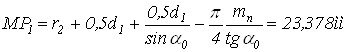 h*a2 – коэффициент головки зуба рейки dn1= 13,155 мм Высота зуба шестерни