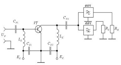 показують, що для сучасних БТ еКост/ЕК При використанні ГЗЗ із ЕП у ключовому режимі в передавачах необхідно, щоб коливання в навантаженні були гармонійними, а навантаження ЕП було б резестивним, тобто однакової для всіх гармонік колекторного струму. Таке навантаження можна здійснити за схемою, приведеної на рис. 3, де Rб = Rн. транзистор потужність ключовий навантаження Фільтр НЧ пропускає коливання першої гармоніки до навантаження Rн, фільтр ВЧ — усі частоти, починаючи з другої гармоніки і вище, до баластового опору Rб.
