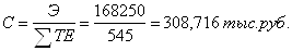 Согласно решению Коллегии МПС задание по сокращению эксплуатационных расходов составляет 7,5% от эксплуатационных расходов, следовательно, сокращение эксплуатационных расходов должно составлять 12618,75 тыс. руб. 3. Себестоимость содержания одной технической единицы (тыс. руб.) Себестоимость содержания одной технической единицы определяется путем деления общей величины эксплуатационных расходов дистанции в тыс. руб. на оснащенность дистанции в технических единицах, т.е.