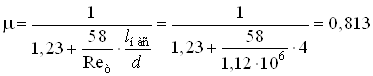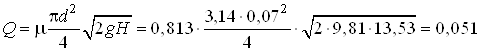 Определяем коэффициент расхода внешнего цилиндрического насадка, используя эмпирическую формулу [1, с.106]