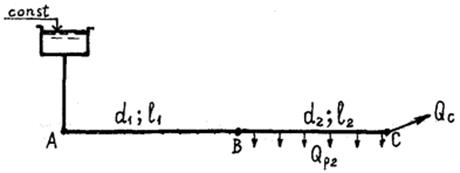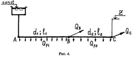 Рис.4. Расчетная схема к задаче 4 1. Поскольку участки трубопровода 1 (AB) и 2 (BC) соединены последовательно, то имеем