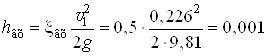 Определяем потери при выходе воды из трубы в правый резервуар под уровень