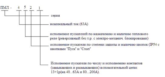 2. Магнитные пускатели (4 шт.) По напряжению сети Иan≥Иs 660В>380В По напряжению катушки Ика = Иц.упр. 220В = 220В По номинальному току аппарата Iн.an≥Iраб. 63А>58,9А Выбирают исполнение пускателя по защите от воздействия окружающей среды, наличие теплового реле.
