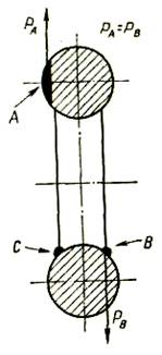 Рисунок 11 – Приспособление для разборки и сборки шин с ободами «трилекс» 1.4 Колеса Основные неисправности колес: разработка отверстий в дисках под шпильки крепления колес к ступице, деформирование дисков, трещины около отверстий в дисках колес, механические повреждения и коррозия ободов, бортовых замочных колец, срыв резьбы на шпильках и гайках и др. ТО колес заключается в визуальной проверке колес, обнаружении указанных неисправностей и их устранении. При современных высоких скоростях движения автомобилей большое значение приобретает уравновешивание колес. Это можно объяснить тем, что большой удельный вес материала, значительное удаление масс от оси и неравномерное распределение массы шин при больших скоростях может привести к возникновению больших неуравновешенных сил и моментов. Действие этого явления особенно неблагоприятно для управляемых колес, так как возникающие нагрузки не только вызывают износ деталей ходовой части, но и могут нарушить устойчивость движения. Неуравновешенность колес возникает как при их изготовлении, так и при неравномерном изнашивании. Это говорит о том, что уравновешенность колес следует проверять систематически. При независимой подвеске неуравновешенность вращающихся масс может вызвать вертикальные колебания колес или горизонтальные колебания вокруг шкворней. Уравновешивание колес является органической частью технологического процесса ТО автомобилей. Существует динамическое и статическое (применяется редко) уравновешивание колес. Для устойчивого движения колеса необходимо, чтобы ось его инерции совпадала с осью вращения. Этого можно добиться динамическим уравновешиванием. При статическом уравновешивании стремятся к тому, чтобы колесо, установленное на исправных подшипниках, в любом положении оставалось неподвижным, что свидетельствует о равенстве масс, находящихся по обе стороны оси вращения. Для этого колесо закрепляют на валу, установленном на подшипниках или призмах. Затем добиваются с помощью противовесов (свинцовых грузиков) такого положения, чтобы колесо, повернутое в любое положение, оставалось неподвижным. При этом абсолютно безразлично, на какую сторону обода устанавливается противовес. Например, если избыточный вес помещается в точке Л (рисунок 12), то для выполнения условия статического равновесия противовес может быть установлен в точке В или С. Противовес, установленный в точке В, уравновешивает систему. Однако при вращении колеса наличие избыточных масс, расположенных в точках А и В, влечет за собой возникновение центробежных сил, равных по величине, но действующих не по одной прямой. Это создает момент, вызывающий колебания управляемых колес. Таким образом, статическое уравновешивание колес позволяет установить лишь радиальное положение неуравновешенной массы. Определить осевое положение нельзя. Поэтому лишь случайно может увеличиться динамическая неуравновешенность при установке противовеса на наружную или внутреннюю сторону обода.