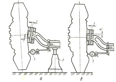 а) колесо вывешено; б) колесо опущено на пол Рисунок 4 – Замер зазора в шкворневом соединении Углы установки управляемых колес диагностируют и регулируют после устранения люфта в шкворневых соединениях и подшипниках ступиц колес при нормальном давлении воздуха в шинах и креплении дисков колес. Диагностируют эти углы на стационарных стендах с помощью переносных приборов. Стенды бывают механические, оптические, оптико-электрические и электрические, а переносные приборы — механические, жидкостные и оптико-электрические. Из применяющихся стендов для проверки углов установки управляемых колес наибольшее распространение за последние годы получили оптические (рисунок 5), как наиболее точные. На этих стендах углы развала, схождения, продольного наклона шкворня и соотношение углов поворота колес измеряются оптическим методом, а угол поперечного наклона шкворня — по уровню, смонтированному на зеркальном отражателе. Измерение углов установки колес на оптическом стенде заключается в определении углов наклона зеркального отражателя, установленного параллельно плоскости вращения колеса и регистрации изменения этих углов при повороте колеса на 20° (для замера продольного наклона шкворня и соотношения углов поворота колес). При отсутствии развала и схождения колес изображение шкалы стойки, наблюдаемое через измерительный микроскоп, после отражения в зеркалах, закрепленных на колесе и стойке, точно накладывается на неподвижное перекрестие окуляра. Так, если колесо имеет развал, то шкала сместится относительно неподвижного перекрестия окуляра по вертикали (вверх или вниз), а при наличии схождения — по горизонтали (вправо или влево). Величины этих смещений. Дают соответственно углы развала и схождения колес.