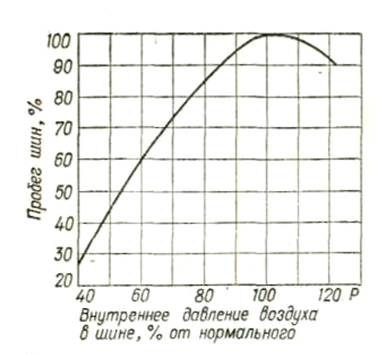 Рисунок 7 – Влияние внутреннего давления воздуха на пробег шины