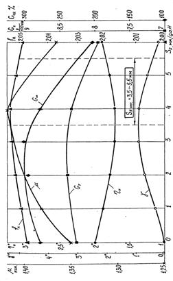 из поворота, свободный руль: В этом режиме движения значительны силовые нагрузки в РП, поэтому преобладает влияние критерия качества РП на угол увода передней оси, уменьшая его величину с учётом коэффициента смещений в РП. Чувствительность к управлению с увеличением критерия качества РП до 3–4 мм/даН вначале повышается до 10–12%, что объясняется стабильным односторонним силовым замыканием, которое при дальнейшем увеличении критерия качества РП нарушается и чувствительность к управлению резко снижается, что следует из рисунка 3. При этом же значении критерия качества РП курсовая устойчивость повышается до 25–30%, но её относительное изменение минимально. Недостаточная поворачиваемость уменьшается на 12–15% при тех же значениях критерия качества РП, что объясняется менее интенсивным нарастанием действия стабилизирующего момента из-за смещений в кинематической цепи РП. Изменение коэффициента сопротивления качению в этом режиме движения не превышает 2% и является не значимым. При этом с увеличением критерия качества РП смещения в рулевом приводе способствуют изменению положения УК в сторону уменьшения сопротивления качению. Отмечено, что расход топлива в этом режиме движения уменьшается на 3–5% с увеличением критерия качества РП от 3 до 6 мм/даН. Относительный износ шин с увеличением критерия качества РП уменьшается до 40–45% от начальной величины, а наибольшая интенсивность отмечена при величине критерия качества РП, равной 2–2,5 мм/даН. Причём, влияние критерия качества РП на изменение ЭС в этом режиме движения носит ярко выраженный нелинейный характер (рис. 3).
