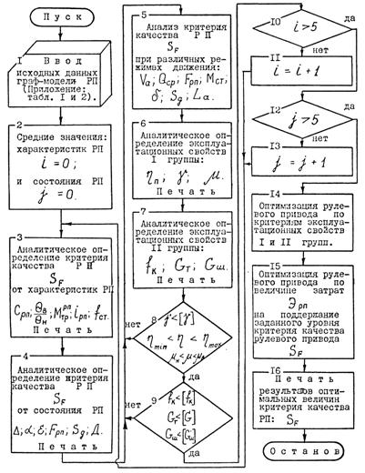 Рис. 4. Блок-схема алгоритма моделирования процесса изменения эксплуатационного состояния РП и эксплуатационных свойств автомобиля Таблица 1. Исходные данные для моделирования на ЭВМ процесса изменения эксплуатационного состояния рулевого привода и эксплуатационных свойств автомобилей (значения величин, входящих в зависимости граф-модели РП)