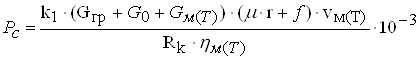 где k1-коэффициент,учитывающий силу трения реборд колес о рельсы, (1,85-2,5); Gм(т)- сила тяжести моста с тележкой или только тележки, Н; µ- коэффициент трения в опорах ходовых колес, (0,15-0,08); r-радиус шейки оси ходового колеса,м; f- коэффициент трения качения ходовых колес по рельсам,(0,0005-0,0012); vм(т)- скорость движения моста или тележки,м/c; Rк- радиус ходовых колес,м; ŋм(т)- КПД механизма передвижения моста или тележки. Номинальная скорость движения моста 2,0-2,3 м/c.