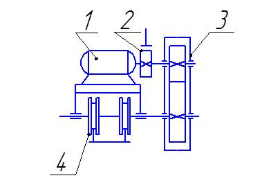 1-электродвигатель; 2-соединительная муфта с тормозом; 3-редуктор; 4-ходовые колеса. Рисунок 1 - Кинематическая схема электроприводов передвижения моста. ЗаключениеВ курсовой работе дано краткое описание смешанной системы электроснабжения, показано расположение основного электрооборудования пассажирского купированного вагона с установкой кондиционирования воздуха, разработана и вычерчена принципиальная схема электроснабжения вагона. Рассчитаны
