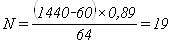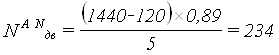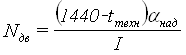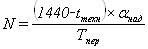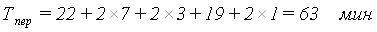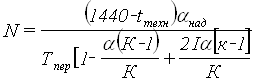где tтех - технологическое "окно" для выполнения работ по текущему содержанию пути (на однопутных участках - 60 мин., на двухпутных - 120 мин.; αнад - коэффициент учитывающий влияние отказов технических устройств на пропускную способность (на однопутных линиях при тепловозной - 0,89; на двухпутных линиях 0,90); К = 2 - число поездов в пакете; Тпер - период обычного графика; I - интервал между поездами в пакете, мин.; α - коэффициент пакетности (=1).
