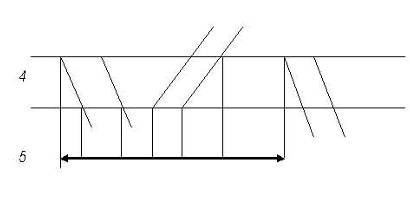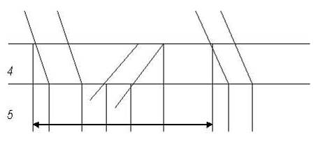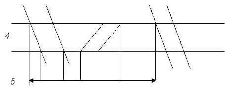Расчёт пропускной способности однопутного участка N - Д осуществляется по ограничивающему перегону. Перегон 4 - 5 труднейший так как время хода по перегону составляет 41 мин. и является наибольшим. Выбираем оптимальную схему прокладки поездов через трудный перегон. 1. Поезда пропускаются сходу на труднейший перегон.