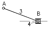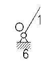 Число W показывает, скольким звеньям необходимо задать закон движения для получения определенности движения всего механизма. Звено, закон движения которого задан, называется начальным звеном. В рассматриваемом механизме начальным звеном является кривошип ОА. 1.4 Определение класса и порядка механизма по АссуруТак как степень подвижности механизма равна единице, то группа начального звена состоит из одного подвижного звена 1 и стойки 6 (рис. 3). Такая группа по классификации Ассура относится к 1-му классу, 1-му порядку. С группой начального звена соединена группа Ассура 3-4 (рис. 4), состоящая из шатуна 3, ползуна 4 и трех кинематических пар 5-го класса. Эта группа относится к 1-му классу, 2-му порядку. С группой начального звена также соединена группа Ассура 2-5 (рис. 5), состоящая из шатуна 2, ползуна 5 и трех кинематических пар 5-го класса. Эта группа относится к 1-му классу, 2-му порядку.