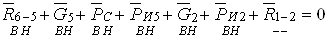 Рис. 10. Схема нагружения группы Ассура 2-5 В данной группе неизвестны реакции в кинематических парах R6-5, R1-2 и R2-5 = - R5-2, которые можно найти из уравнений равновесия звеньев и группы в целом. 1.