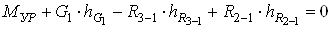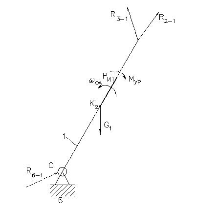 Рис. 14. Схема нагружения группы начального звена Уравновешивающий момент Мур может быть найден из уравнения моментов, составленного относительно шарнира О: 1.