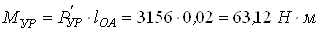 где МИ и МУР – момент сил инерции и уравновешивающий момент (Нм); l – длина звена (м). Для данного механизма имеем: