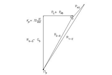 Примем КР =20 Н/мм и построим векторный многоугольник – план сил группы начального звена (рис. 15 и чертеж курсовой работы).