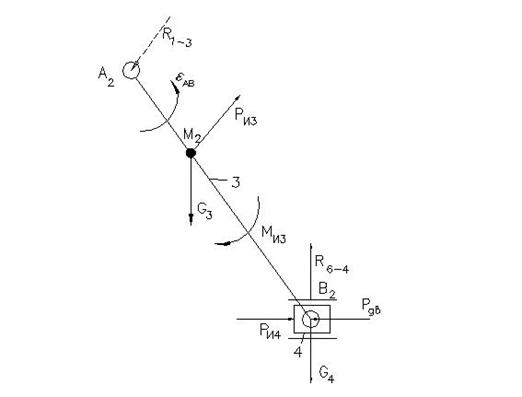 Силы инерции направлены в сторону, противоположную ускорениям центров тяжести звеньев. Моменты сил инерции звеньев (Н·м) определяются по уравнению