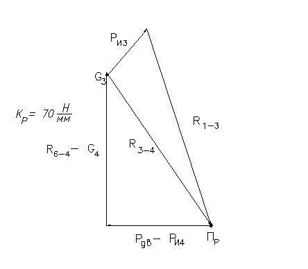 Принимаем масштабный коэффициент сил КР = 70 Н/мм. Графические значения сил определяются как отношение истинных значений к величине КР, например: