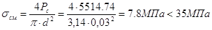 При передаче тягового усилия напряжение будет определятся по формуле: