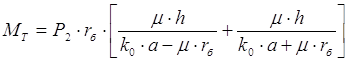 где rб – радиус барабана, м; μ – коэффициент трения; h – расстояние от рабочего цилиндра до опоры, м; a – расстояние от опоры до линии действия реакции, м;