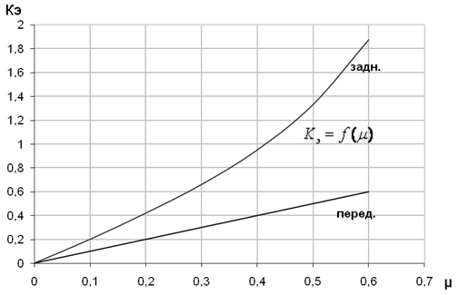 сил передних тормозных механизмов Графическая зависимость коэффициентов эффективности тормозных механизмов от величины коэффициента трения представлена на рис. 1.