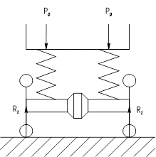 Рисунок 1 - Схема сил, действующих на подвеску Зависимая подвеска (задняя)Нагрузка на упругий элемент определяется по формуле: