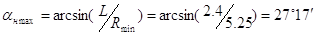 Максимальный угол поворота наружного колеса определяется по формуле: