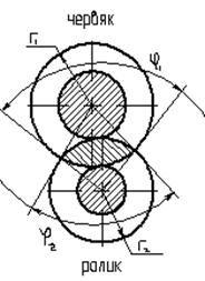 Рисунок 4 - Схема зацепления червяк-ролик. Подставив данные значения в формулу (2.9) получим: