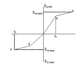 Рисунок 3 - Скоростная характеристика амортизатора Наибольшее распространение имеют амортизаторы двустороннего действия с несимметричной характеристикой разгрузочного клапана - коэффициент сопротивления при сжатии меньше коэффициента отдачи, чтобы при наезде колеса на неровность и быстром сжатии амортизатора не передавались большие усилия на кузов. Разгрузочные клапаны открываются, когда скорость колебания кузова значительно увеличивается; таким образом, нагрузки на кузов ограничиваются. Давление жидкости в телескопическом амортизаторе в 4…5 раз меньше, чем в рычажном. Рабочий процесс телескопического амортизатора показан на рисунке 2 При плавном сжатии перепускной