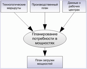 Курсовая работа: Планирование загрузки производственных мощностейКурсовая работа: Планирование загрузки производственных мощностейВведение Для того чтобы производственная программа была осуществима, необходимо, чтобы имеющиеся в наличие производственные мощности смогли обработать то количество сырья и материалов-комплектующих, которое предписывает составленный функцией планирования потребности в материалах план заказов, и изготовить из них готовые изделия. Собственно план является основным входным элементом планирования потребностей в производственных мощностях. Другим немаловажным входным элементом является технологическая схема обработки / сборки конечного готового изделия. Обычно, производственные мощности предприятия классифицируются на производственные центры. Таким производственным центром может быть комбинация станков, инструментов, рабочих и т.д. Результатом работы функции является план потребности в производственных мощностях. Этот план определяет, какое количество стандартных часов должна работать каждый производственный центр, чтобы обработать необходимое количество материалов. Также очень важно заметить, что модули MRP-системы являются четко и однозначно взаимосвязанными. Это в свою очередь означает собой тот факт, что в любом случае, если потребности в материалах (план, являющийся следствием изначально составленной программы производства) не могут быть удовлетворены ни за счет внутреннего производства, ни за счет закупок на стороне, в план производства, очевидно, должны быть внесены изменения. Однако подобные явления должны быть исключениями. Одной из основных задач является составление успешного производственного плана с самого начала. Таким образом, если в результате работы функции может быть установлено, что план осуществим или неосуществим. Если план неосуществим, то производственная программа должна быть пересмотрена, более того, вероятно, необходимо пересмотреть весь план деятельности. Однако важно осознавать, что такой шаг должен быть сделан в самом крайнем случае, так как планировщик, работающий с системой должен быть компетентен и должен осознавать производственные возможности своего предприятия, понимая, что задача компьютера – лишь оптимально распределить загрузку производственных мощностей на период планирования. Тем самым, планировщик должен стараться определить и опротестовать заведомо неосуществимый план, до его принятия и запуска, или найти пути для расширения производственных мощностей до необходимого уровня. 1. Функциональное обеспечение и требования по управлению производством Система управления производственным предприятием должна отвечать следующим требованиям и обеспечить следующую функциональную полноту: 1. Обеспечение планирования продаж, которое оценивает (обычно в единицах готового изделия), какими должны быть объем и динамика продаж, чтобы был выполнен установленный бизнес-план. 2. Обеспечение планирования производства, которое утверждает план производства всех видов готовых изделий и их характеристики. Для каждого вида изделия в рамках выпускаемой линии продукции существует своя собственная программа производства. Таким образом, совокупность производственных программ для всех видов выпускаемых изделий, представляет собой произво