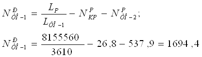 Одержані значення пробігів необхідно скорегувати ще раз, по кратності середньодобового пробігу. Це пояснюється тим , що автомобіль може бути встановленим на обслуговування тільки після завершення робочої зміни, тобто період між сусідніми ТО повинен відповідати цілому числу днів. Корегування по кратності середньодобового пробігу проводиться в такій послідовності: Для пробігу до ТО-1: - кількість днів між сусідніми ТО-1: