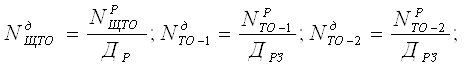 Кількість ЩТО, ТО-1, ТО-2, за добу визначається також по кожній технологічно сумісній групі РС по формулах: