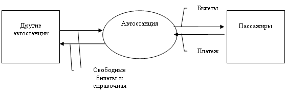 Рис.1. Пример взаимосвязи информационных потоков Основная задача проектирования базы данных - определение количества отношений и их реквизитного состава. Совокупность реквизитов, объединенных в более крупную единицу данных, называется составной единицей информации. На основе последних можно составить входные и выходные документы базы данных "Автостанция". Рассмотрим входной документ "Расписание рейса" 1. В общей заголовочной части расположены такие реквизиты, как наименование организации, эмблема организации, главный диспетчер, так как эти реквизиты относятся ко всему документу. 2. К предметным строкам документа относятся в данном случае реквизиты номер рейса, дата отправления, пункт отправления, пункт назначения, время в пути. 3. К заверительной части документа относится реквизит - начальник смены. 4. К реквизиту, предназначенному для улучшения читабельности документа, относится реквизит Расписание рейса, но этот реквизит не подлежит вводу в базу данных.