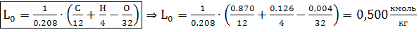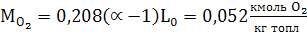 Параметры рабочего тела Количество воздуха необходимого для сгорания 1кг топлива: В кмоль: 0,208- объемное содержание кислорода в1кмоль воздуха