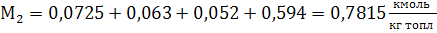 Общее количество продуктов сгорания: