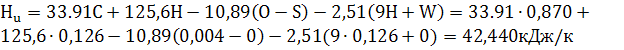 i= 8 ; ε=16,5; τ= 4 Тепловой расчет: Дизель: Состав: С= 0,870; H=0,126;О=0,004 Необходимая теплота сгорания топлива: