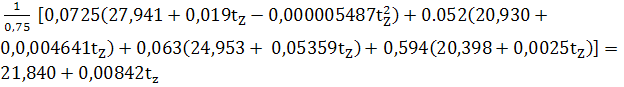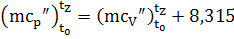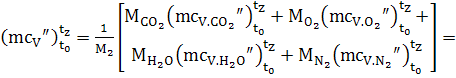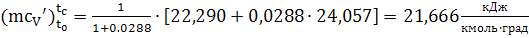 Средняя мольная теплоёмкость продуктов сгорания. (эмпирическая формула для интервала температур от 0 до 1500°С)