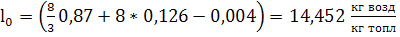 Далее расчет ведем для режима максимальной мощности Примем коэффициент избытка воздуха ∝ =1,5 при неразделимых камер сгорания. И рассчитаем количество горючей смеси :