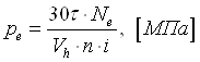 где Nе – эффективная мощность, кВт; τ – тактность двигателя; Vh – рабочий объём одного цилиндра, л; n – номинальная частота вращения, мин-1; i – число цилиндров.