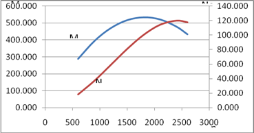 Рисунок 3 - График зависимости эффективной мощности и крутящего момента от частоты вращения коленчатого вала