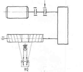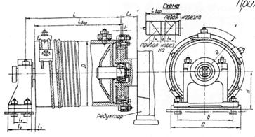 с цилиндрическим редуктором и барабаном при помощи муфт; полумуфта со стороны