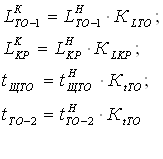 де: КLТО, КLКР, К4, КtТО, КtПР - коефіцієнти , корегуючи відповідно
