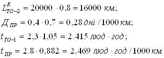 періодичність ТО , пробіг до КР, час простою в ТО і ПР, трудомісткість ТО, трудомісткість ПР.
