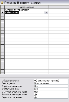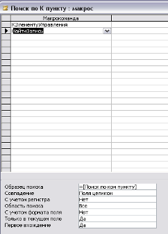 Рис. 15 Рис. 16 Этот макрос нужно присоединить к свойству После обновления поля со списком. Для этого выполним следующие действия: a) перейдем к свойству После обновления элемента управления Поиск по нач пункту; б) введем Поиск по Н пункту в соответствующую ячейку. Аналогично для макроса Поиск по К пункту (Рис. 16). 2. ТЕРЕТИЧЕСКИЙ ВОПРОС Что такое запрос, для чего он используется? При выполнении запроса программа «отбирает» данные, соответствующие заданным условиям, и предоставляет их в распоряжение пользователя в качестве результата запроса. Запросы особенно цены тем, что в отличие от фильтров могу выполнять не только информационно – справочную функцию, отображая необходимые данные из таблиц, но и производить некоторый анализ данных. Например, можно построить запрос, который будет отображать сведения о самых ранних поездах. Кроме того, запросы готовы взять на себя сложные операции манипулирования данными: так называемые запросы на изменение позволяют, например, удалить сразу несколько записей, удовлетворяющих определенному условию, создать новую таблицу по результатам запроса или скопировать данные из одной таблицы в другую. Однако список преимуществ запросов этим далеко не ограничивается. 1. Запросы позволяют собирать воедино информацию из одной или нескольких таблиц, учитывая связи, установленные между таблицами. Один к одному. Каждой записи главной таблицы соответствует одна связанная запись подчиненной таблицы. Такой тип отношения используется редко, так как все данные фактически могу быть помещены в одну таблицу. Он полезен, когда целесообразно разделить одну громоздкую таблицу, содержащую множество полей, на две. Один ко многим. Одна запись главной таблицы связана с множеством записей подчиненной таблице. Многие ко многим. Каждой записи главной таблицы соответствует много записей подчиненной таблицы и наоборот. Через связующую таблицу, содержащую ключ первой и второй таблицы. 2. Можно указать какая часть результирующих записей будет отображена. 3. В запросе можно задать выполнение вычислений, основываясь на значениях полей таблицы. 4. Существующий запрос можно в дальнейшем использовать в качестве основы при создании нового запроса, который вы можете изменить и сохранить под другим именем. Результат работы запроса – группа записей, которые удовлетворяют заданному критерию запроса. Совокупность этих записей называется динамическим набором записей и отображается в виде таблицы. В Access можно создать различные виды запросов: 1. Наиболее часто используемым типом запроса является запрос на выборку, осуществляет выборку данных, соответствующих указанному условию отбора, из одной или нескольких таблиц. 2. Программа позволяет создать четыре различных типа запроса на изменение: - запрос на создание таблицы позволяет сохранить результирующий набор записей в качестве новой таблицы; - запрос на обновление записей используется для изменения данных в соответствии с заданным выражением. - запрос на добавление добавляет записи, соответствующие заданному условию, в другую таблицу. - запрос на удаление удаляет записи, соответствующие заданному условию. РАЗДЕЛ 2 ИНСТРУКЦИЯ ПОЛЬЗОВАТЕЛЯ Данная база данных разработана по расписанию поездов. Она обеспечивает сведения об отдельно взятом поезде и параметрах его передвижения. 