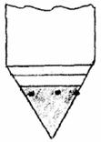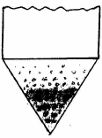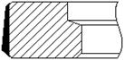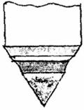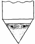 Уплотняющий поясок несколько смещен вниз от основания конуса (рис.6.4.11). На первом этапе задача сводится к смещению пояска вверх в нужную зону для чего пасту наносят ниже кромки пояска и также интервалами 15-30 сек. Производить притирку и замену пасты. Если паста после притирки равномерно распределена по поверхности, то это указывает на отсутствие искажения формы конусов и поясок довольно Рис.6.4.11 Рис.6.4.12 быстро будет перемещаться вверх к основанию, а окончательную его доводку проводят по варианту 1. Если же игла притиралась многократно, то не исключено, что на конусе под пояском имеется впадина. Такую ситуацию можно отличить по неравномерному распределению пасты после притирочных операций: выступающий поясок будет светлым, а впадина со скопившейся в ней пастой будет выглядеть темной полосой (рис.6.4.12). Ситуация осложняется и потребует большего времени или даже проверки формы седла и его исправления. При достаточной квалификации исполнителя выступ на конусе иглы, на котором находится поясок, можно убрать тонким (мелким) бруском, установив иглу на станок (снять всего 0,01-0,02 мм). После этого притирку повторить. Вариант 3. Поясок на игле смещен вниз и притиркой по седлу его не удается исправить. Требуется проверка формы седла в корпусе. Если выяснится нарушение формы седла, то после ее исправления притирку можно повторить по варианту 2. Проверку и исправление формы седла производят с помощью, притира аналогичного по форме и размерам игл, и отличающегося от нее увеличенным углом конуса (60 градусов 30 минут вместо 60 градусов) и уменьшенным диаметром цилиндрической направляющей части (так, для дизеля RND 68 рекомендуемый диаметр 11,50 мм). В судовых условиях его невозможно изготовить с такой точностью по углу конуса и необходимо сделать заказ на его изготовление. При этом обязательно нужно указать матери: серый чугун СЧ22; СЧ28 (cast iron). Выбор материала притира мотивирован тем, что он должен быть мягче притираемых поверхностей. (Так для обработки посадочного гнезда под форсунку в стальной цилиндрической крышке притир изготовляют из более мягкого материала бронзы). К тому же серый чугун обладает антизадирными свойствами и не подвержен пластическим деформациям в следствии нулевой пластичности. Поэтому и проверочные плиты делают чугунными. Требование к пониженной твердости по отношению к обрабатываемой поверхности обусловлено тем, что при притирке абразивы способны внедряться в более мягкую поверхность и образуют вместе с нею нечто наподобие абразивного камня. Такая поверхность царапает более твердую, а сама защищена от износа и искажения формы. Как производится обработка седла распылителя чугунным притиром подробно описано в инструкциях к двигателям модификаций RND и RTА фирмы “Зульцер”. Если причина затрудненной притирки иглы оказалась в изношенности седла, то после исправления его формы операцию можно повторить.