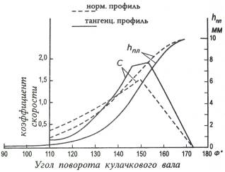 Рис. 6.2.1. Кинематика плунжера ТНВД двигателя «Бурмейстер и Вайн» 74VTBF160. Для достижения более короткой и интенсивной подачи используют тангенциальные кулачки, имеющие более крутой профиль (см. рис. 6.2.2).