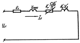 Рисунок 9.1 – Заступна схема для розрахунку пускових характеристик Параметри з урахуванням витиснення струму для литої алюмінієвої обмотки (qрасч=1150С) /1, (6-235)/: