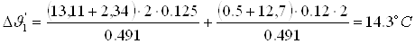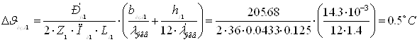 Перепад температури по товщині ізоляції лобової частини: