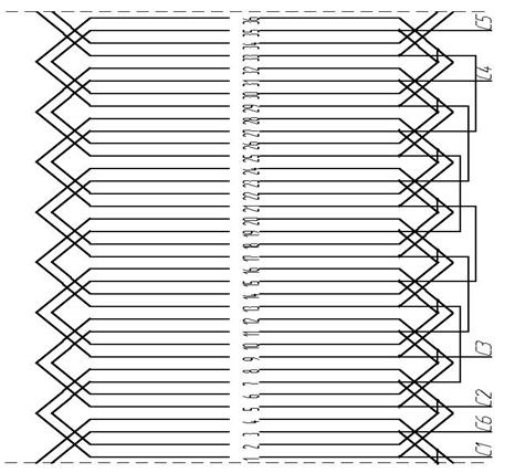 Рисунок 2.1 – Розгортка одношарової концентричної обмотки статора Число пазів статора: